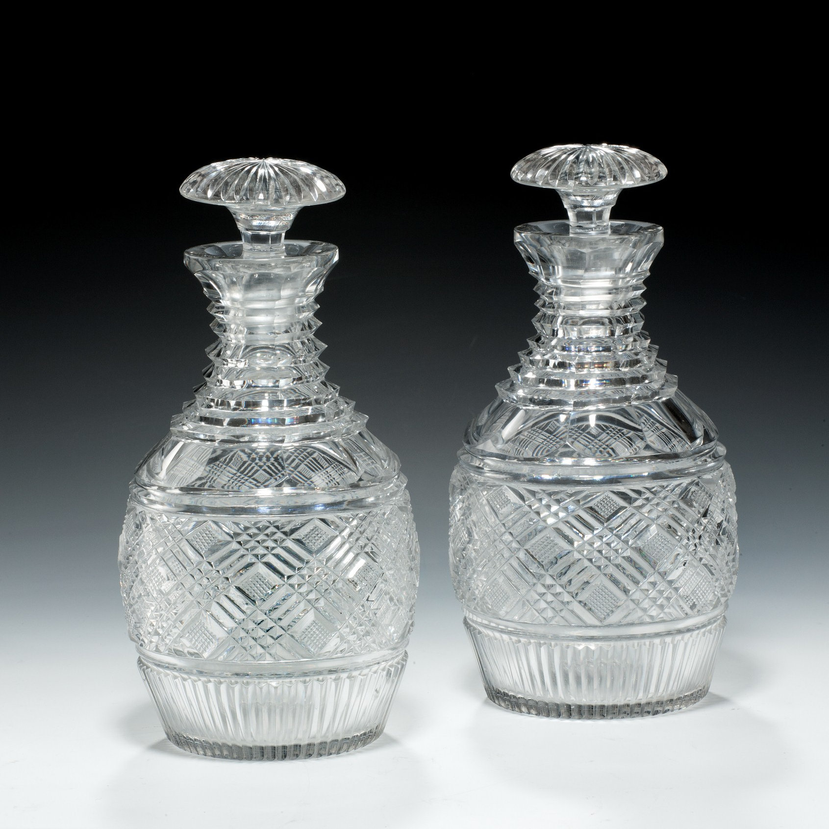 PAIR OF ANTIQUE CUT GLASS DECANTERS Circa 1820 Price: £550